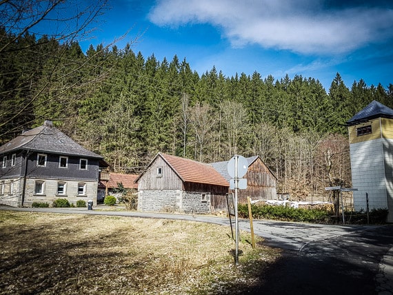 Um den Startpunkt der erstmals im Mai 2007 eingewanderten, und 2018 nachgewanderten und aktualisierten Tour zu erreichen, geben Sie in Ihr Navigationsgerät einfach „Untere Grümpelmühle 1, 96352 Wilhelmsthal“ ein. Alternativ dazu empfiehlt Ihnen HINTERINDIEN.DE Google-Maps. Wichtig: Klicken Sie hier direkt zu Google-Maps. Beachten Sie, dass zur Grümpelmühle nur eine schmale Straße führt. Anfangs ist sie teilweise sogar neu geteert. Doch weiter hinten gibt es teils große Schlaglöcher. Beachten Sie das bitte bei der Fahrt nach hinten ins Tal.