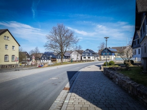 In Birnbaum selbst folgen Sie der Straße immer geradeaus weiter durch den Ort. Es geht am großen Dorfplatz vorbei, der linker Hand liegt. Dann folgen Sie der Straße, die nun langsam wieder aus Birnbaum hinaus führt. Am Ortsrand treffen Sie auf eine Gabelung, an der Sie nach links weiter wandern.