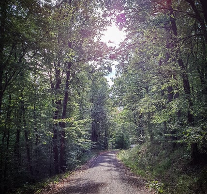 Wandern Sie auf diesem geschotterten Forstweg nun durch stille Wälder, da die Winde an der Westseite der Bergkante abprallen und dieses Tal im Windschatten liegt. Etwa einen Kilometer lang folgen Sie einfach dem Weg mit seinen Kurven und Windungen. Dabei steigt er mal ganz sanft an, um dann sogleich wieder – ebenfalls sanft – wieder abzufallen.