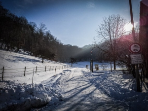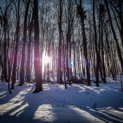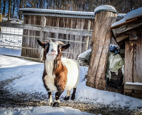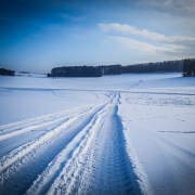 Sobald Sie diese Höfe erreichen, wird der Weg zu einer schmalen, geteerten Straße, die meistens schnee- und eisfrei ist. Folgen Sie dieser etwa einen dreiviertel Kilometer geradeaus. Sie windet sich leicht, führt über eine Anhöhe hinweg und geleitet Sie direkt zum Ort Herzogenreuth, dem mit 596 Metern höchstgelegenen Dorf im Landkreis Bamberg. Vor dem Ortseingang kommen Sie übrigens noch an einem auffälligen Flurbereinigungs-Stein vorbei.