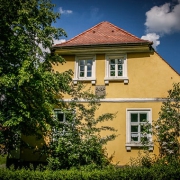 Auf der anderen Seite der Mauer, biegen Sie auf dem dortigen, schmalen geteerten Weg nach links oben ab. Dort folgen Sie ihm und gehen mit ihm weiter an der Mauer entlang. Diese zieht sich hoch bis zu einem südwestlichen Eckturm des Kloster-Areals, den Wächterturm, der heute eher als Marienturm bekannt ist. Er markiert sehr deutlich die südwestliche Ecke der Klosteranlage von Ebrach und ist – obwohl noch nicht renoviert – immer noch eine adrette Erscheinung.