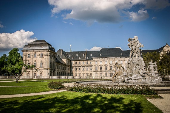 Dann fällt der schmale Pfad wieder steil ab und Sie kommen zwischen zwei Fußballplätzen heraus. Folgen Sie dem Schotterweg bis er auf die nächste schmale Straße mündet und biegen Sie auf dieser nach links vorne in Richtung der Bundesstraße ab. Aber auch diesmal müssen Sie nicht auf der Bundesstraße wandern. Denn: Rechts von Ihr führt ein schmaler, geteerter Weg bis in den Ort Ebrach hinein. Dort können Sie auf den Gehsteigen die letzten wenigen hundert Meter zurücklegen, bis Sie wieder den Marktplatz vor dem Kloster und damit den Start- und Zielpunkt dieser HINTERINDIEN.DE-Tour erreichen.