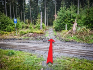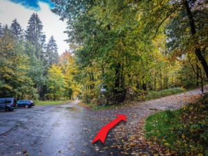 Mit der „Vorsuchhütte“ erreichen Sie auch eine schmale Teerstraße. Sie führt am Haus vorbei bergab auf den schon genannten Parkplatz. Aber gleich direkt gegenüber der unteren Ecke vor der Hof-Einfahrt der „Vorsuchhütte“ verlassen Sie nun den „N“-(