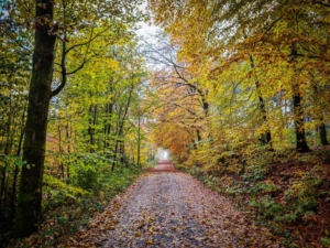 Nach relativ kurzer Zeit geht es auch noch einmal über einen zweiten Waldweg hinweg. Auch hier folgen Sie dem Wanderpfad geradeaus (Bild). Das rote „N“ (