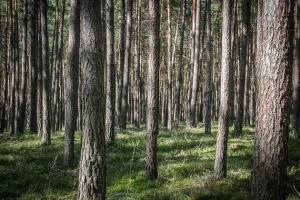 Der Weg wird wieder zum Pfad und macht eine leichte Kurve, die von gut sichtbaren blauen Punkten begleitet wird. Gehen Sie immer geradeaus weiter mit leichtem Gefälle bergab. In diesem Stück Kiefernwald gibt es übrigens viele Pilze. Allerdings sollten Sie sich mit Pilzen gut auskennen, wenn Sie sie sammeln möchten. Weiter unten knickt der Weg noch einmal links ab. Geben Sie bitte immer genau auf den Blaupunkt-Wegweiser (