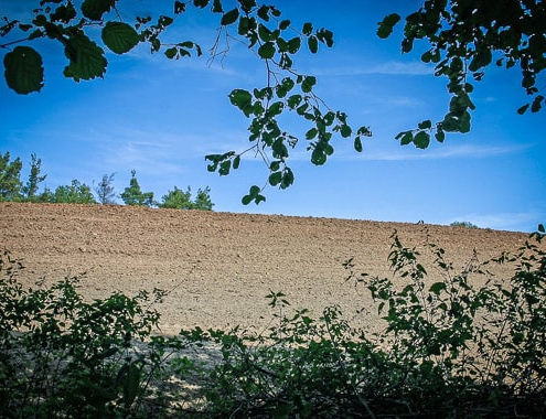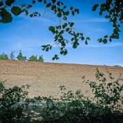 Der Weg führt nun also am Waldrand entlang (links der Wald; rechts die Felder), bis der Gelb-Punkt-Weg (
